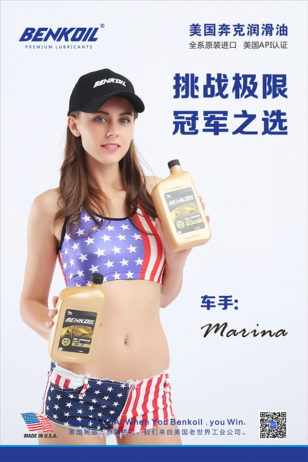 美国原装进口BENKOIL奔克润滑油已在中国上市,特聘请专业车手为BENKOIL奔克代言,Marina在中国为BENKOIL奔克站台!