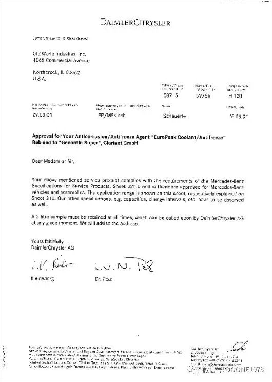 经过一系列严苛精密的评估与审核,BENKOIL产品性能最终获得克莱斯勒CHRYSLER制造商的官方认可。